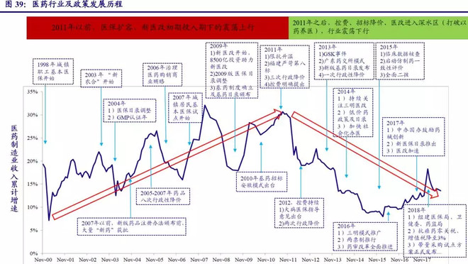 但是在1998年至2018年的20年里,政策发展主线的转折,对于医药制造行业的收入增速有着显著的影响力。